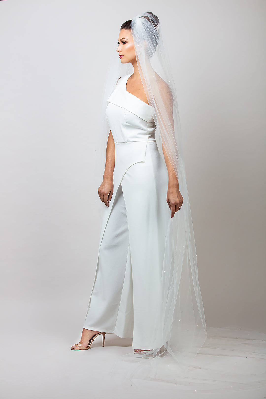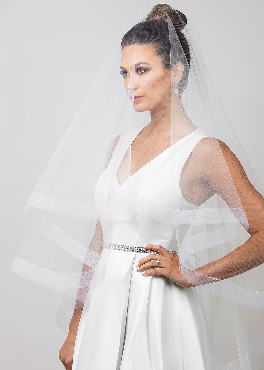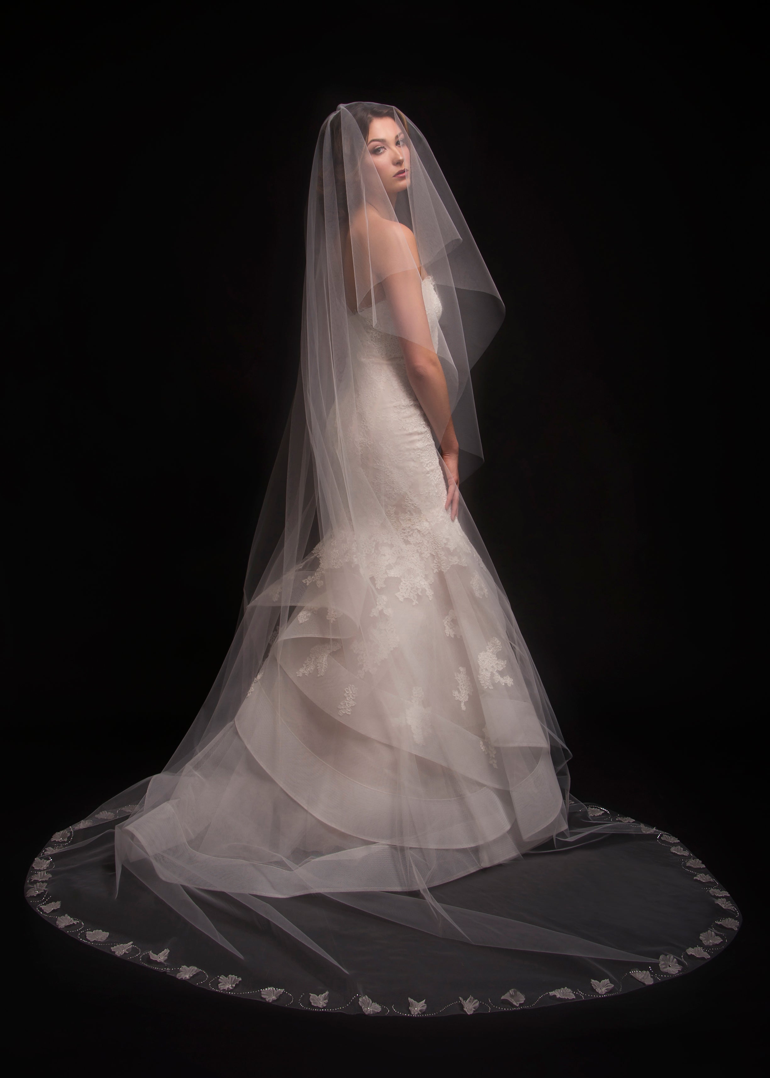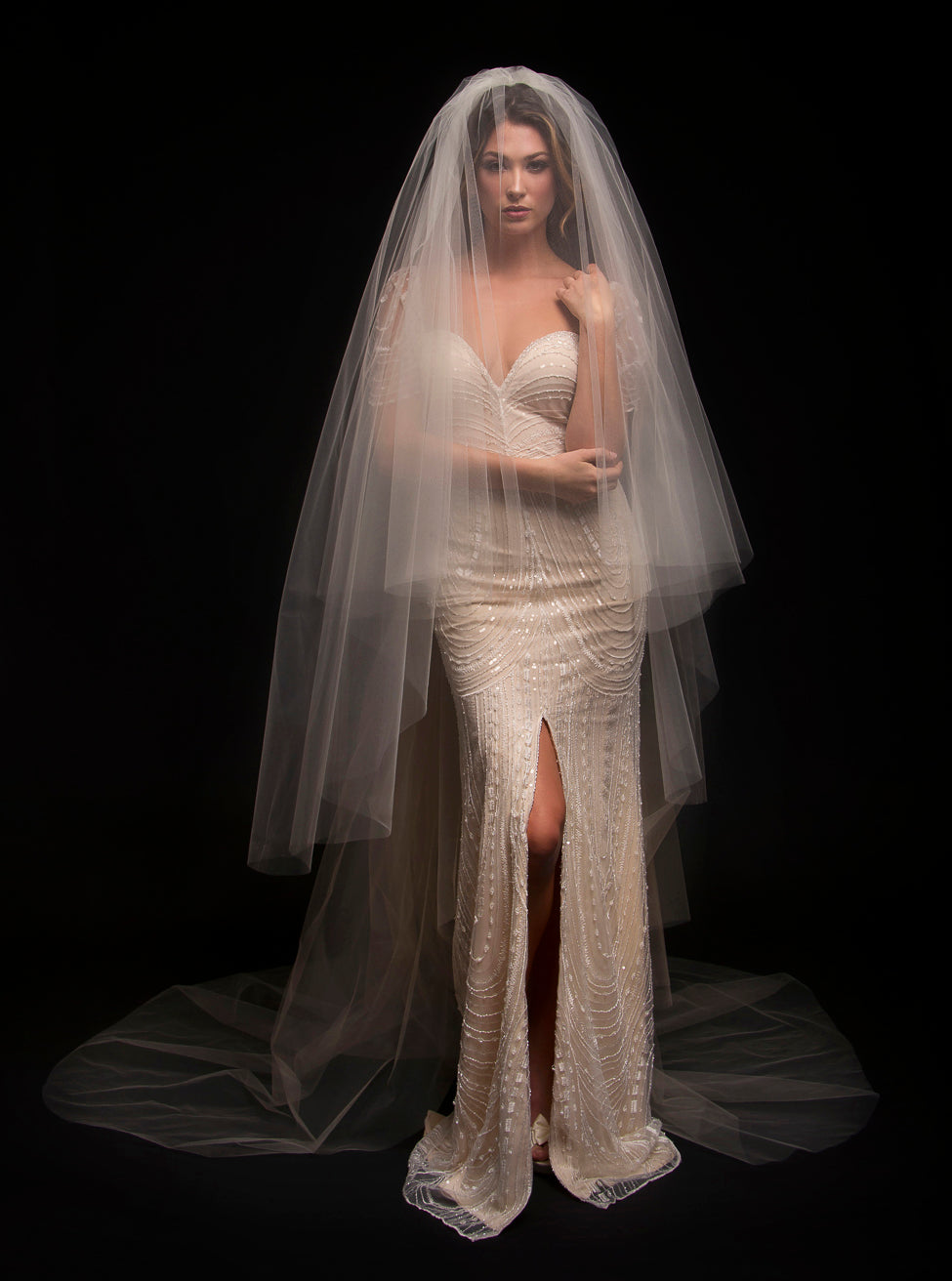 Veil Shown: The "Duet" Veil which is a 4 tier cathedral length wedding veil.