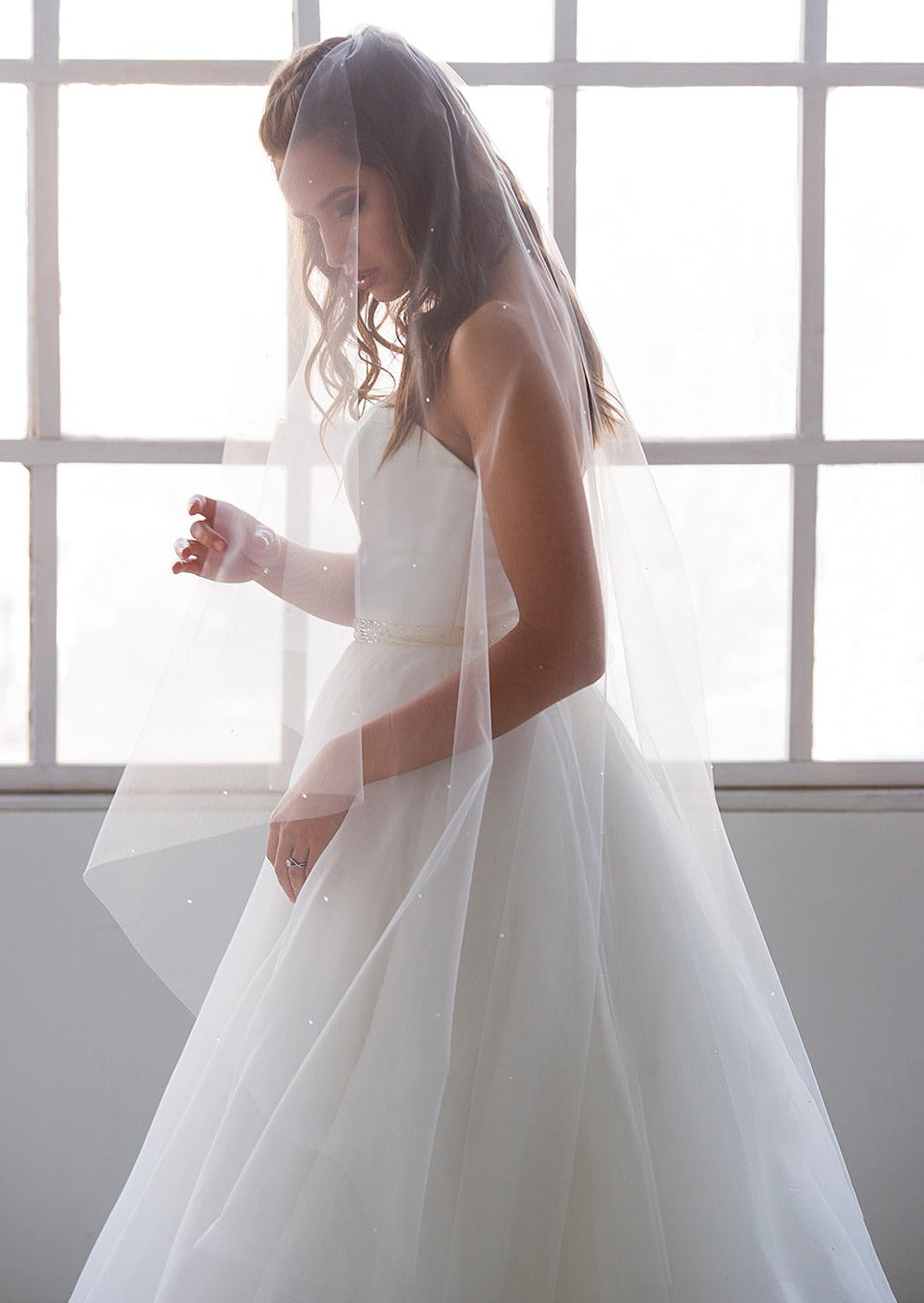 Veil Shown: The Nadene veil in a light ivory sparkle tulle.