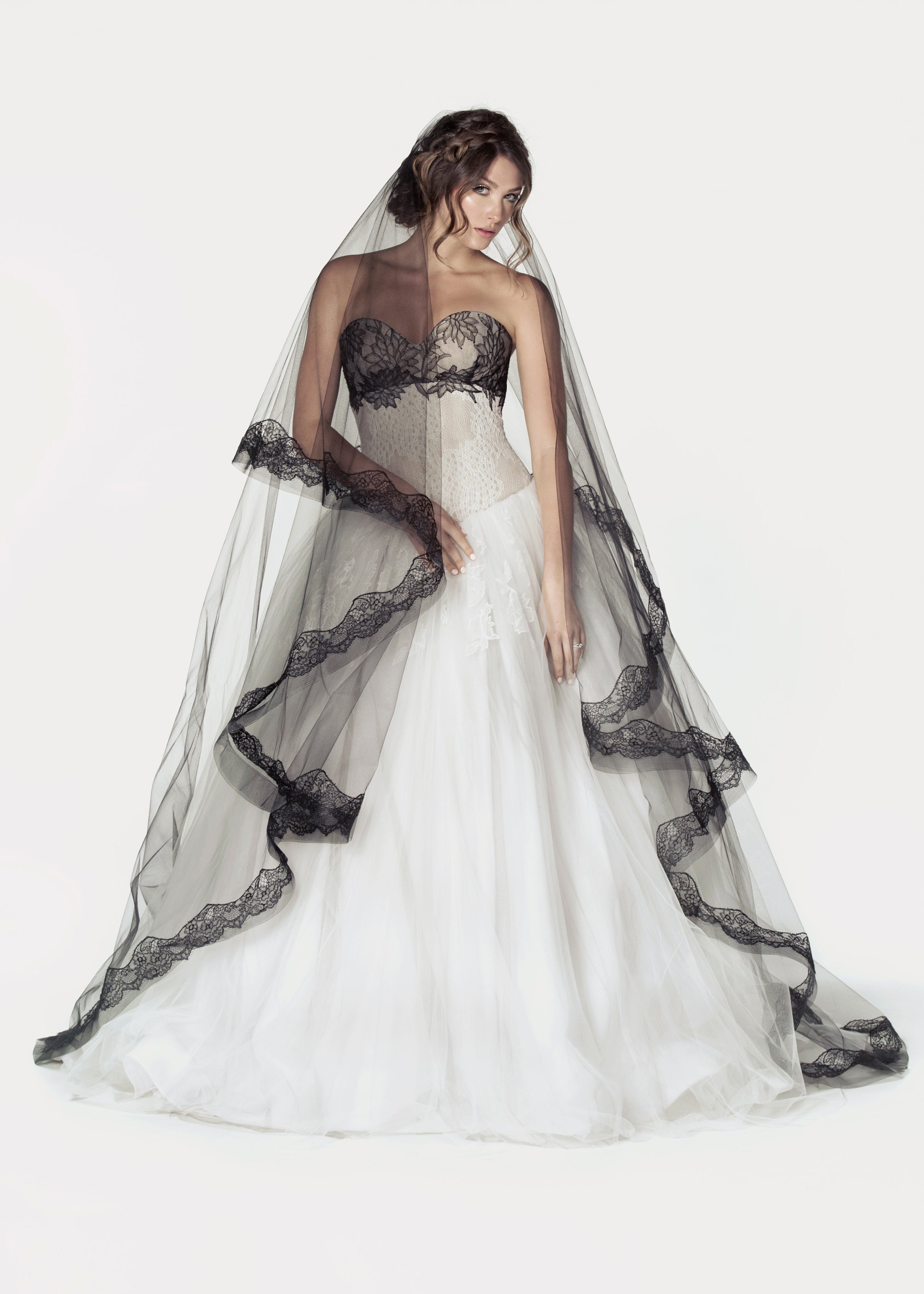 Black // Stand out on your wedding day and be a little bit more daring with a black tulle veil. This piece can be an accent with black trims or be entirely black for a more modern look.Ā