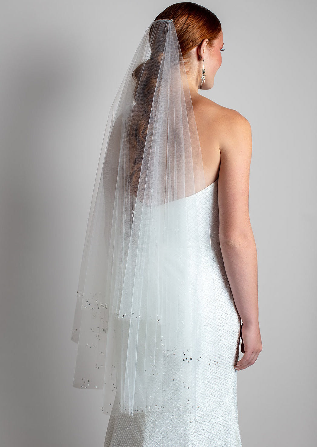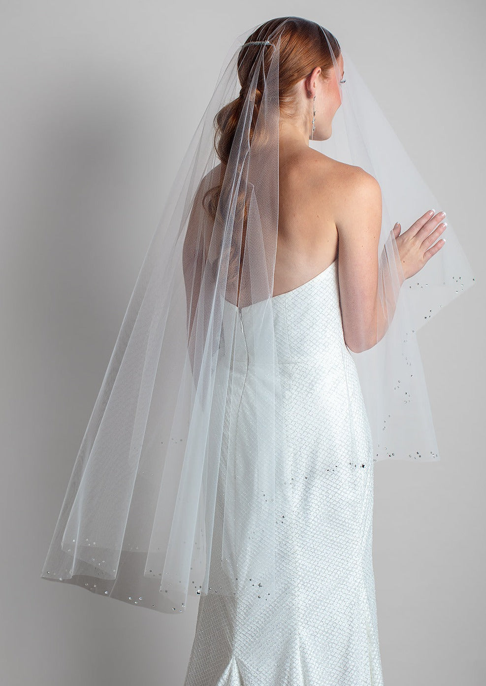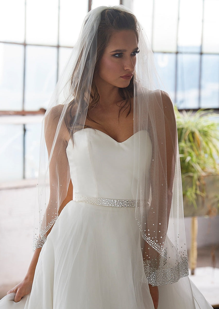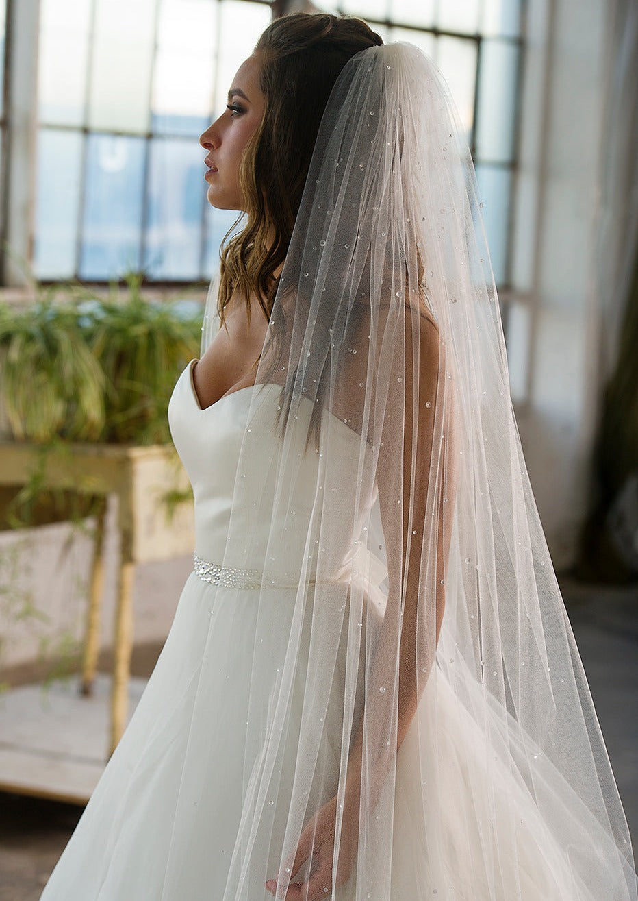 Cathedral Wedding Veil with Austrian Pearl bows placed along the border