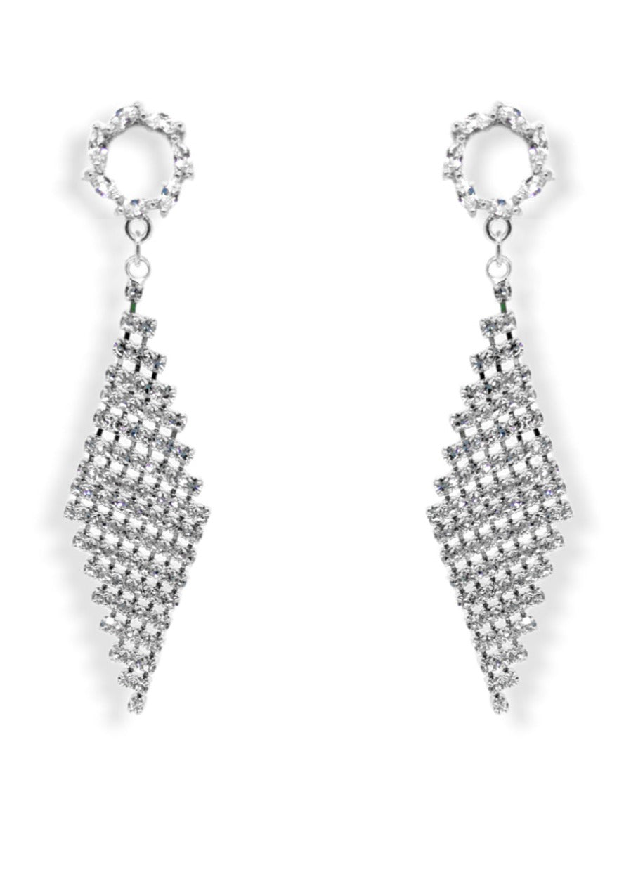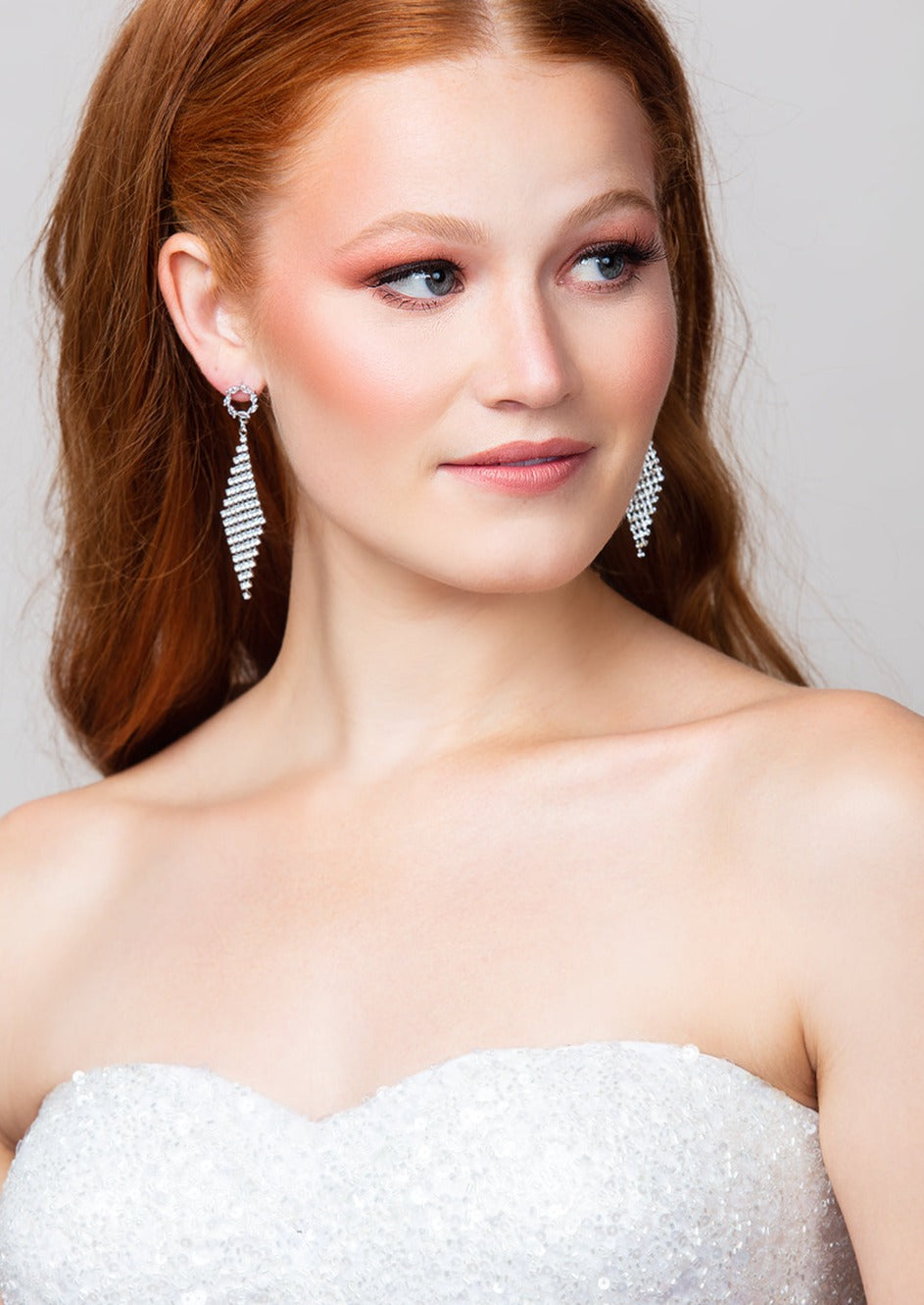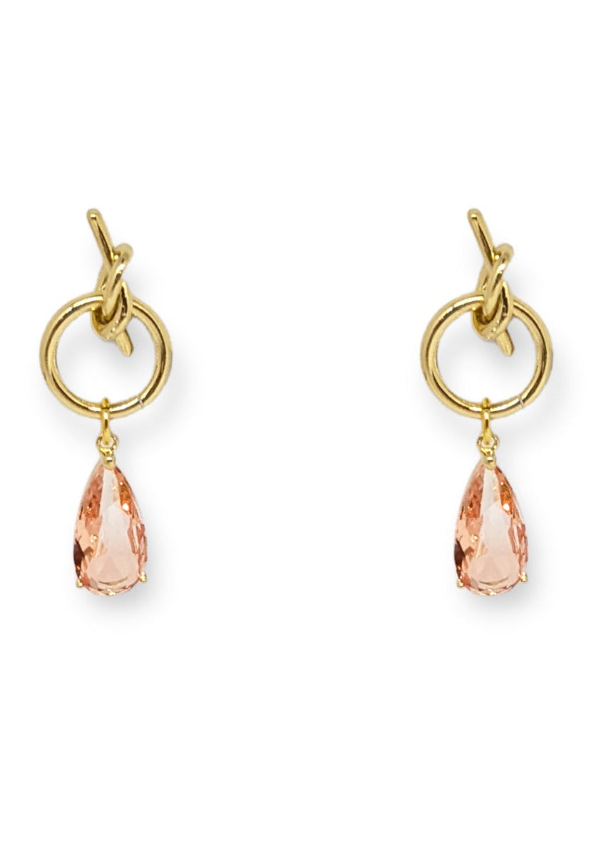 Model wearing Sylvia earrings in gold with CZ crystal drops