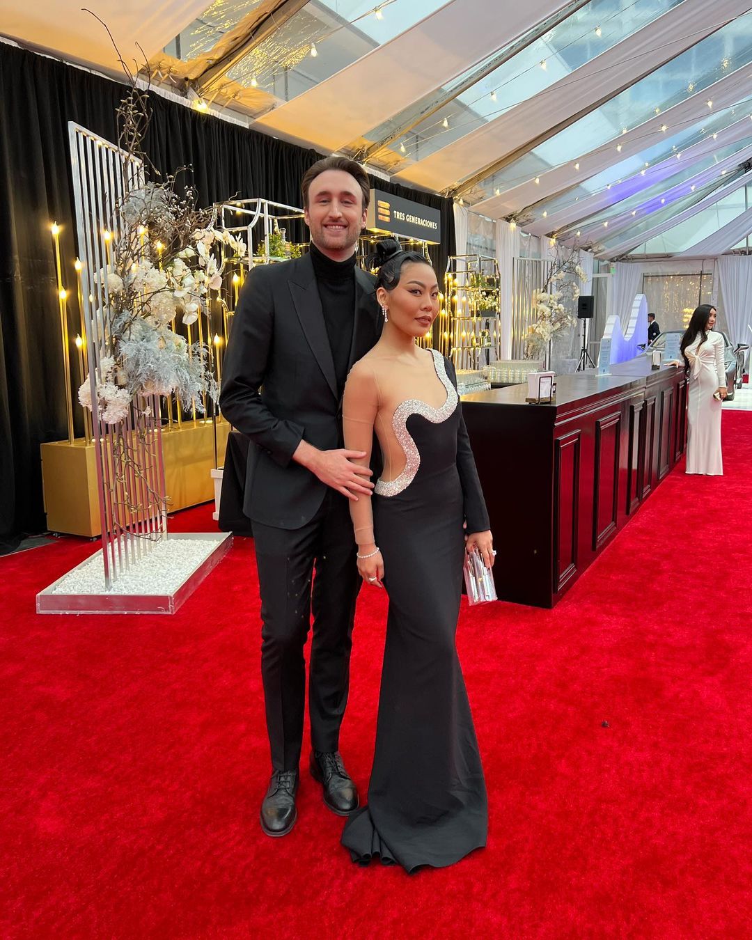 Wearing the Novella Earrings in gold on the red carpet at the Elle Women in Hollywood event.