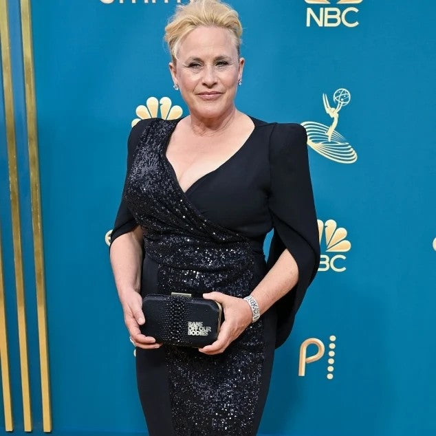 from TV's Grey's Anatomy wears the Ella Clutch in navy to the 2024 Emmy's.