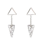 The JULIA brilliant crystal spike stud earrings are the ultimate fashion statement with its double triangle design. These edgy and modern nickel-free ultra sparkly earrings are perfect for any occasion. The triangle is available in trendy silver or bright gold. The crystal spike is available in a beautiful clear crystal, modern silver or black patina and classy gold. They are attached to a push-back backing to make it easy to place in the ear and come with a butterfly backing to stay securely in place. The earring measures to approximately 1.8 inches in length.