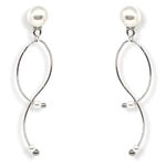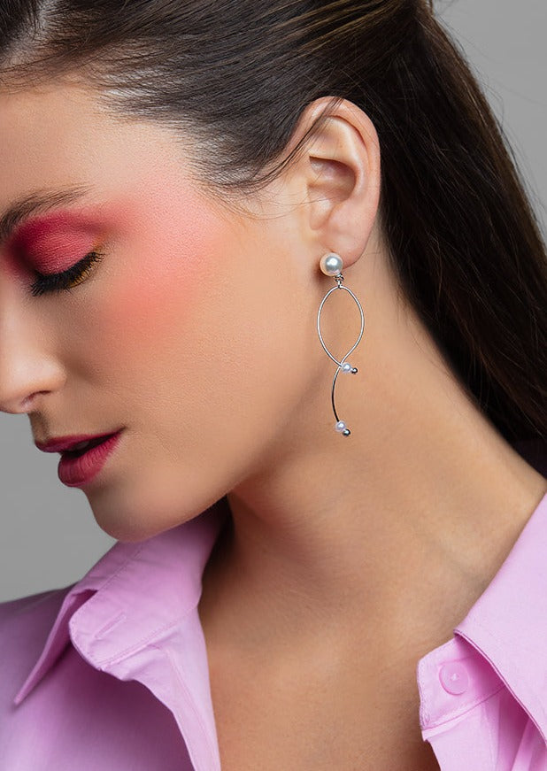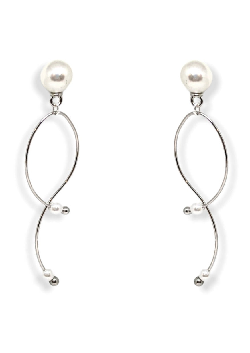 The LULU earrings are a modern take on the fashionable pearl earring. The 8mm imitation faux pearl post is connected to a delicate infinity design with two pearls floating at the end to complete the design. Available in a trendy silver or bright gold, these earrings are attached to a push-back backing to make it easy to place in the ear and come with a butterfly backing to stay securely in place. The earring measures to approximately 2 inches in length.