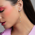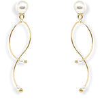 The LULU earrings are a modern take on the fashionable pearl earring. The 8mm imitation faux pearl post is connected to a delicate infinity design with two pearls floating at the end to complete the design. Available in a trendy silver or bright gold, these earrings are attached to a push-back backing to make it easy to place in the ear and come with a butterfly backing to stay securely in place. The earring measures to approximately 2 inches in length.