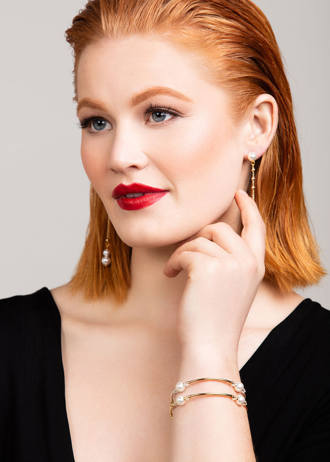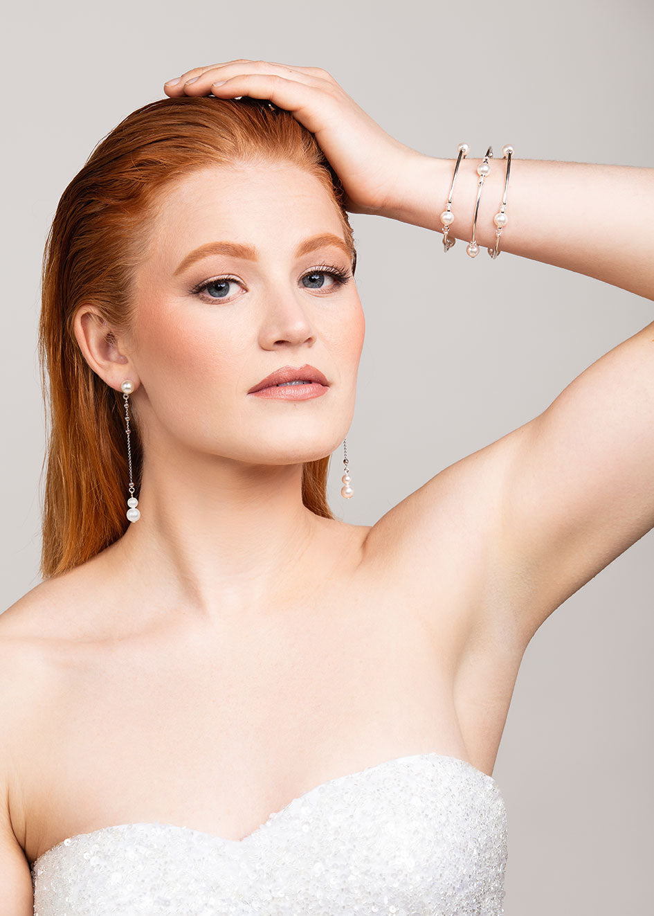 Looking for bling to go with your ring? Our NOAH Bracelet is just the thing! This bangle bracelet features luxurious Austrian pearls mixed with crystal, available in 14k gold-filled, sterling silver accents or a mix of both. Stack them or wear them separately. Perfect for a bridal look or a fashion statement, it's the ideal accessory for your jewelry collection!