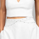 Add a touch of modern elegance to your outfit with the PEARLETTE belt. This delicate chain belt features a double-pearl design that is both stylish and charming. Perfect for adding a subtle pop of glamour to any look. Available in silver or gold. (Go ahead, get pearl-y with it!)