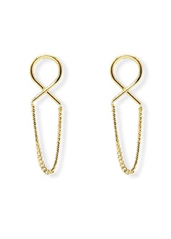 Model holding Ariel Taub’s orange crystal clutch with teal satin lining, Taylor Swift inspired accessory paired with the Lexie gold infinity earrings.