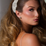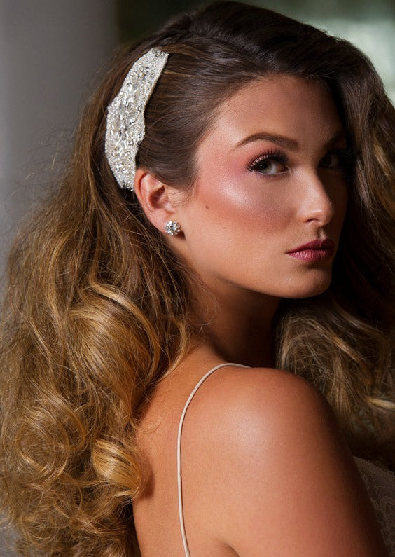Add a mod hair accessory to your bridal look with the lightweight Fay hairpiece. The beading and crystals are placed on a netting fabric, which is attached to a 4.5 inch wide silver metal comb to stay securely in your hair. Since this hair comb is light weight, it will allow you to wear it comfortably as you walk down the aisle and party all night long. This bridal accessory is perfect for a romantic up-do or half-up hairdo, this piece can be styled with any look. This hair bridal accessory is available in traditional silver.