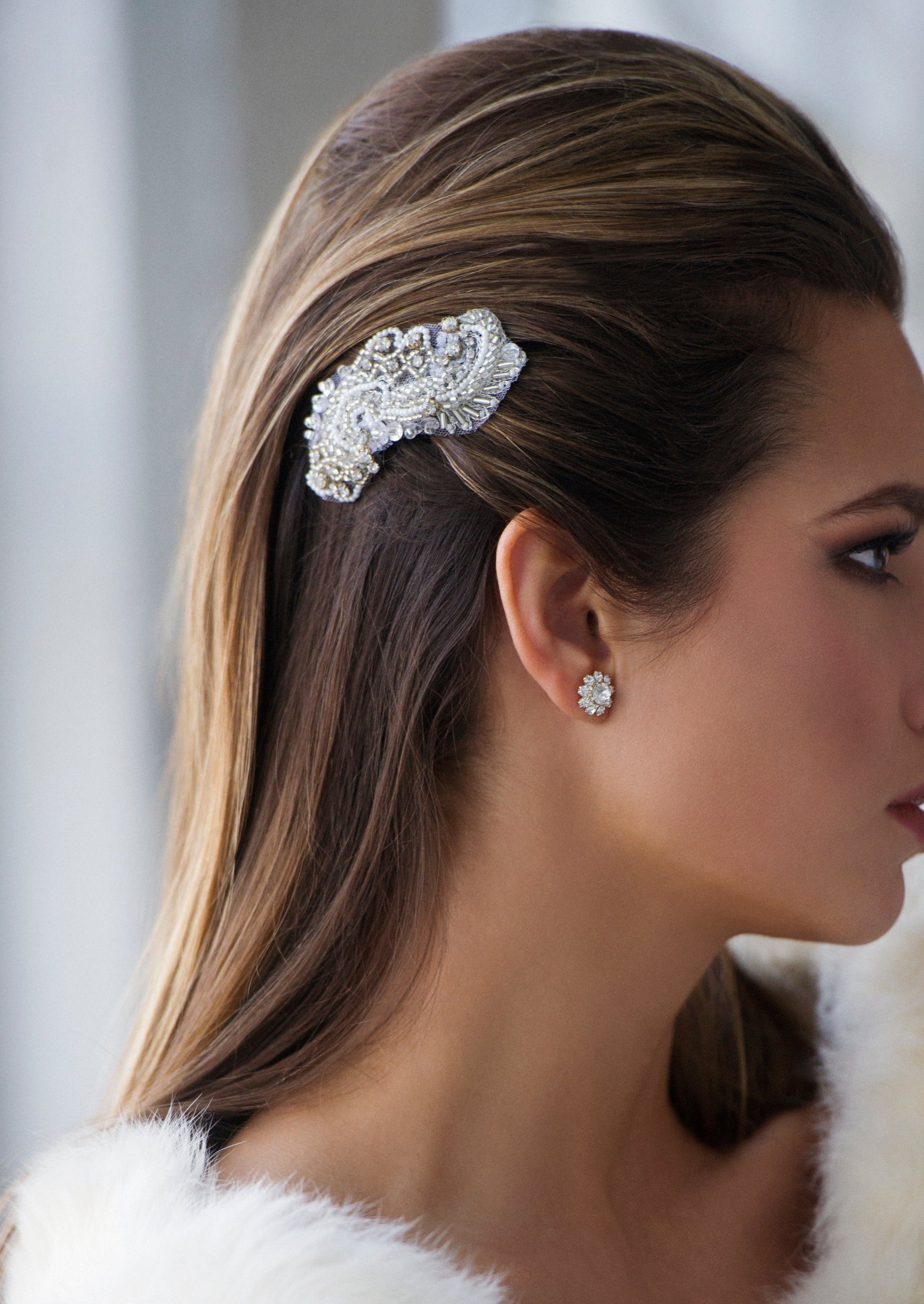 The GLENDA crystal and beaded swirl design bridal hairpiece will add a touch of sparkle to your wedding day.