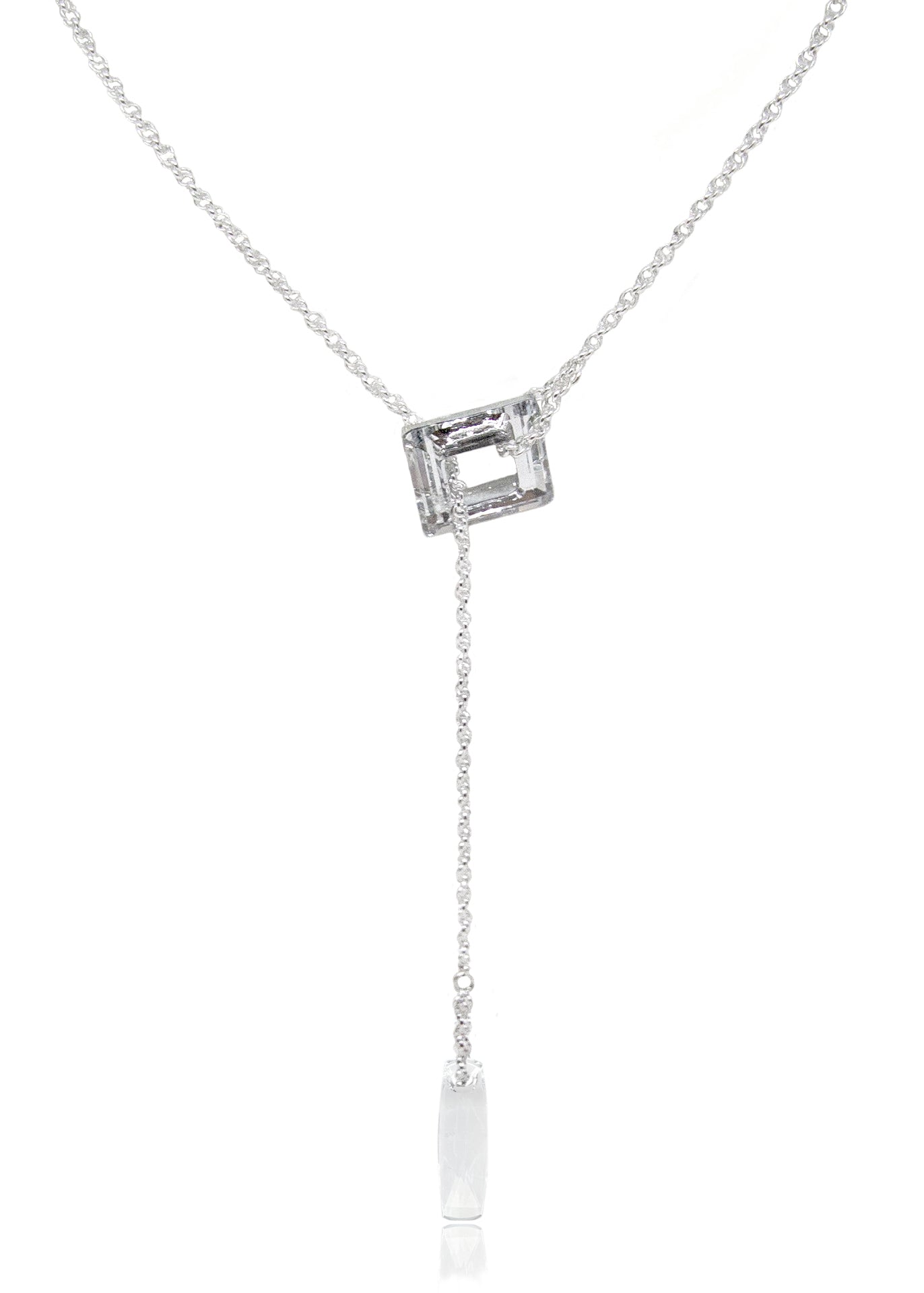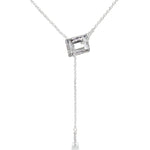 Get on trend with our HUDSON Brilliant Cut Crystal Lariat Necklace. Made with the highest quality crystals, this modern piece of jewelry can be adjusted to any desired length and can be worn in the front or back. This perfect silver necklace can be paired with deep plunging necklines or dramatic back gowns. The perfect accessory to wear for any occasion. This simple yet elegant necklace is made with nickel-free metal and measures 23 inches long.