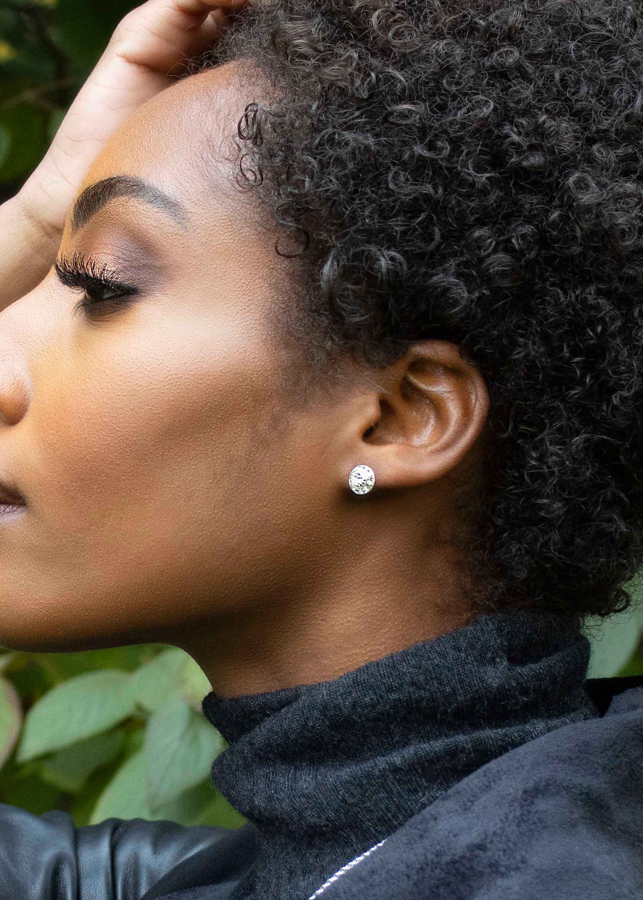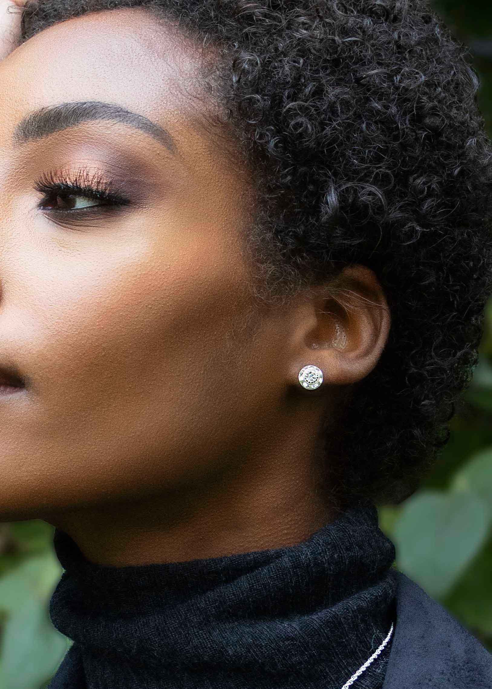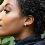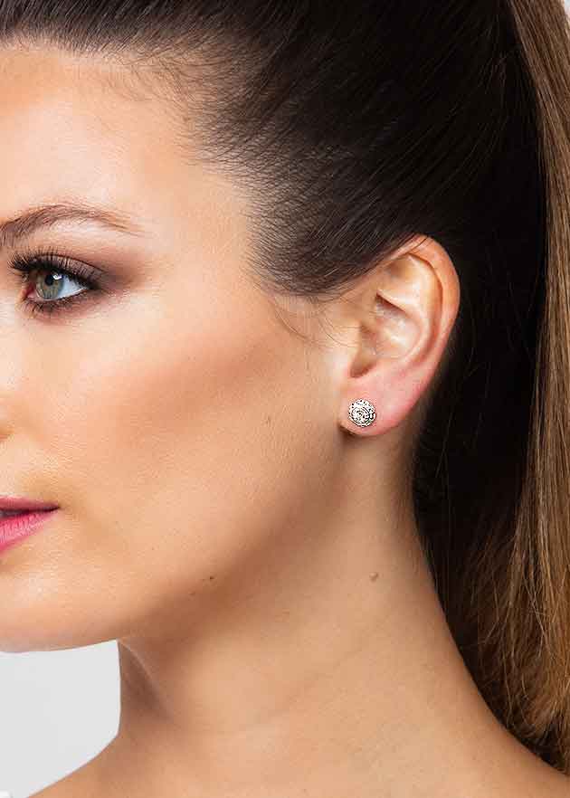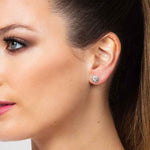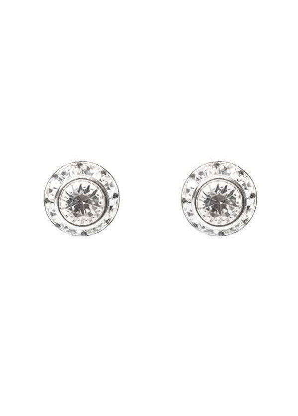The JUDY brilliant crystal silver stud earrings are simple and elegant. The round sparkly crystal stone has a halo of smaller crystals around it to provide a beautiful sparkle. Perfect to wear by themselves, or in a second hole and pair with another pair of earrings. These are plated with sterling silver and are attached to a push-back backing, to make it easy to place in the ear and come with a butterfly backing to stay securely in place. The earrings are nickel-free.