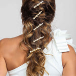 The KIMBERLY hairpiece is light weight and made with multiple size pearls. This multi-pearl gator clip can be worn alone for a romantic bridal hairstyle, or paired with many for a fun and playful look. Perfect for your bridal shower, honeymoon or wedding day. It is available in three different colorways; you can choose from a trendy bright silver, modern rose gold or a glamorous gold. The gator clip measures approximately 2.4 inches wide.