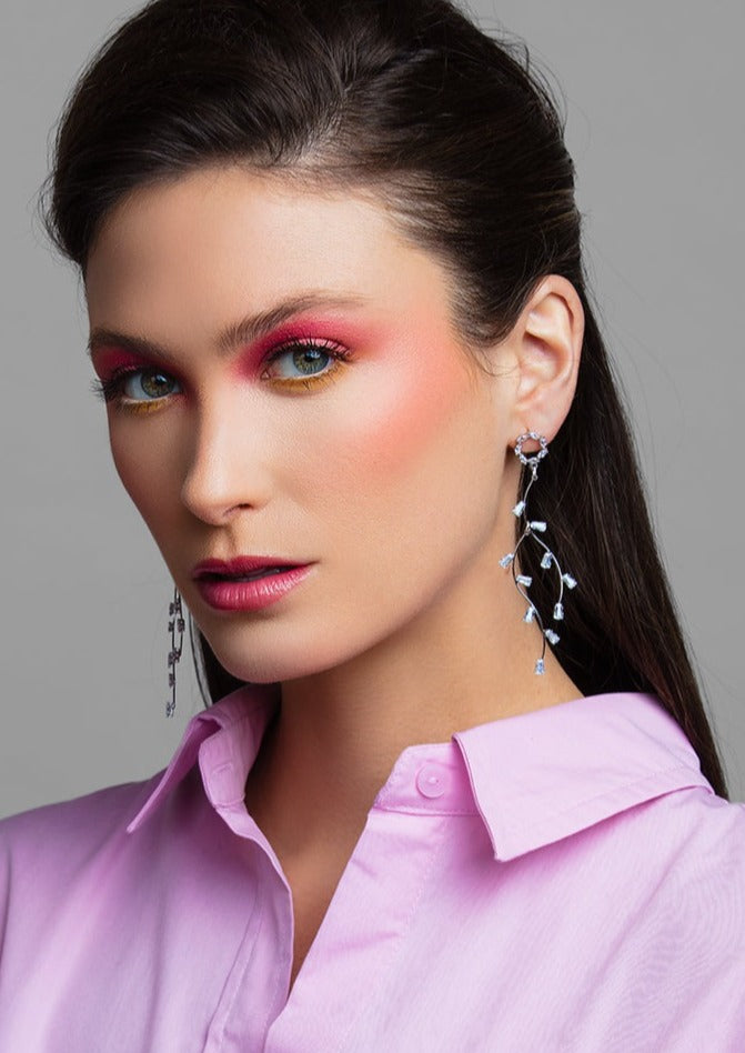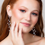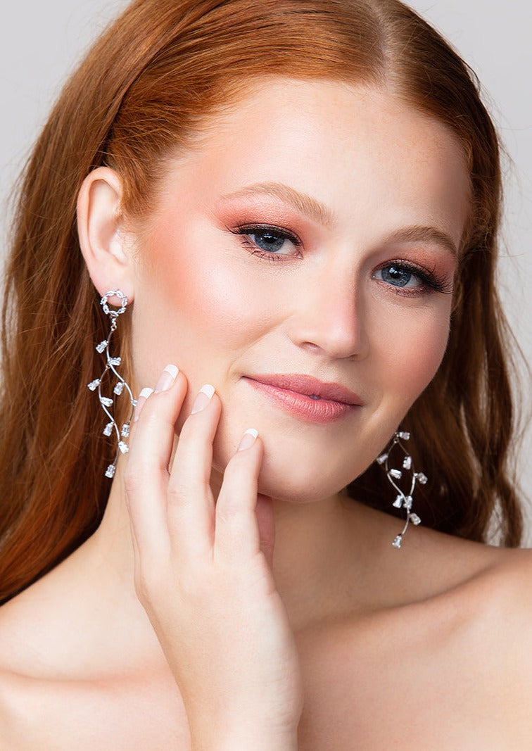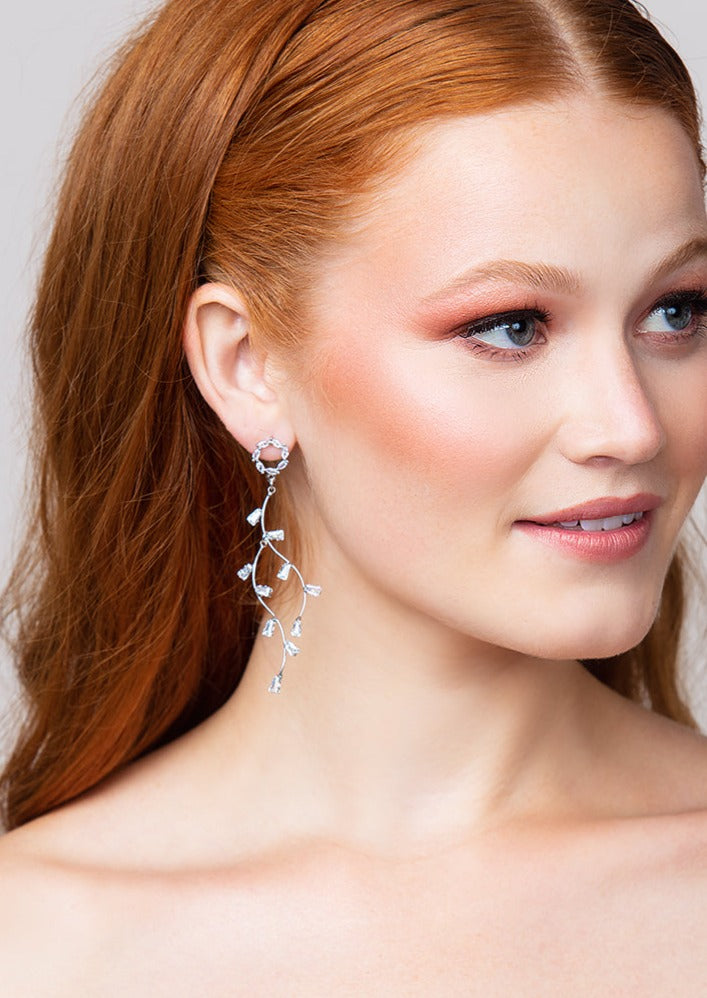 The LILY earrings are lightweight intricate crystal leaf earrings. With the crystal wreath post and leaf inspired twigs hanging below, this earring will not disappoint. It is lightweight and made from nickel-free metal. It is available in a bright silver or trendy gold. The square crystals representing leaves add a hint of sparkle. Perfect for any occasion, even perfect for your wedding day. These organic earrings are attached to a push-back backing to make it easy to place in the ear and come with a butterfly backing to stay securely in place. The earring measures to approximately 3.25 inches in length for the right amount of drama.