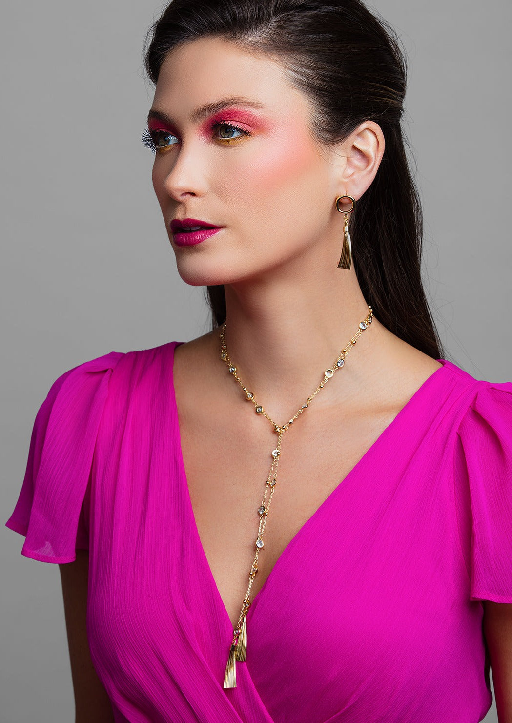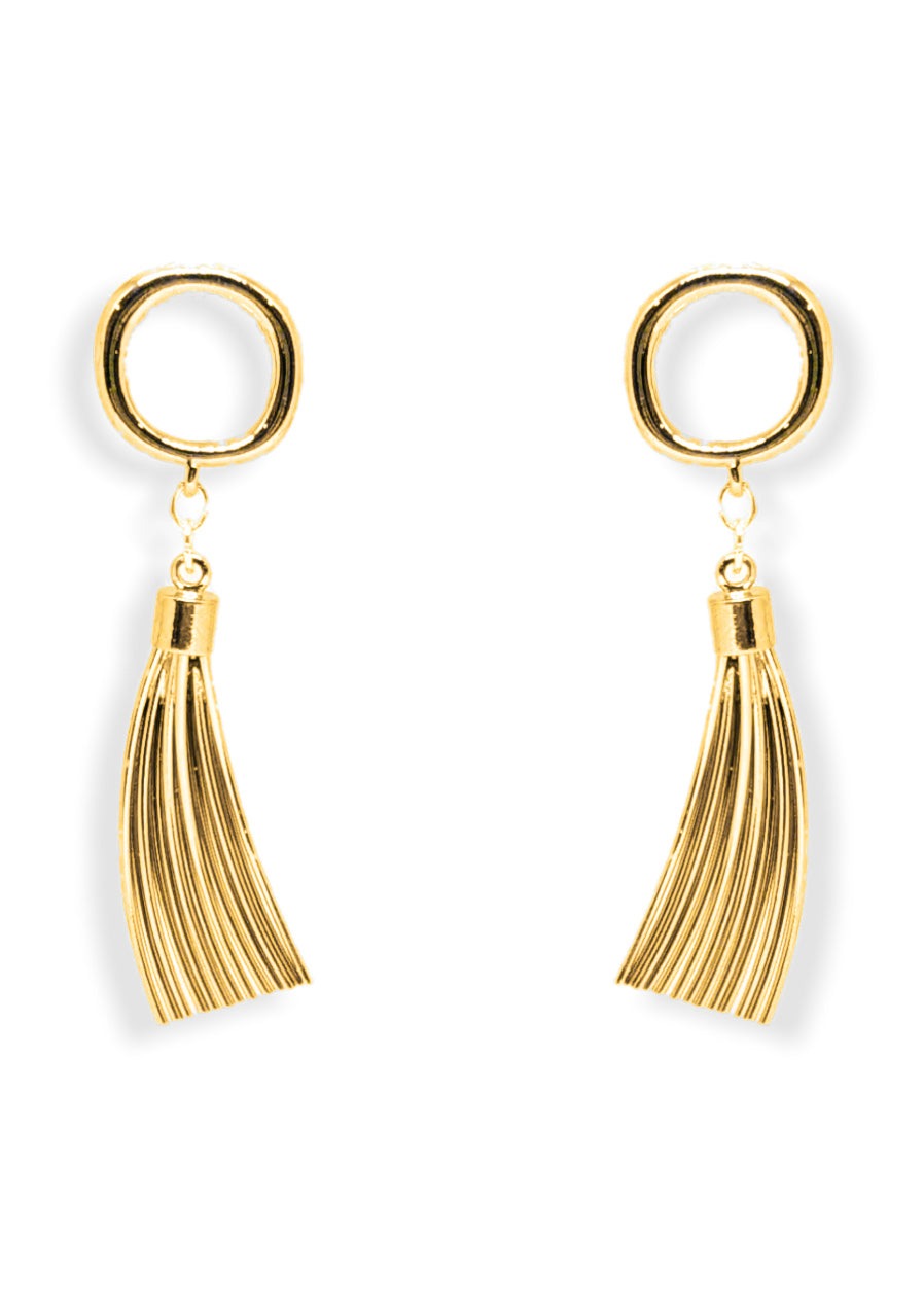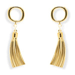 The LUCY earrings are a metal tassel earring available in a bright silver or trendy gold. Perfect for any occasion. These earrings are attached to a push-back backing to make it easy to place in the ear and come with a butterfly backing to stay securely in place. The earring measures to approximately 2 inches in length.