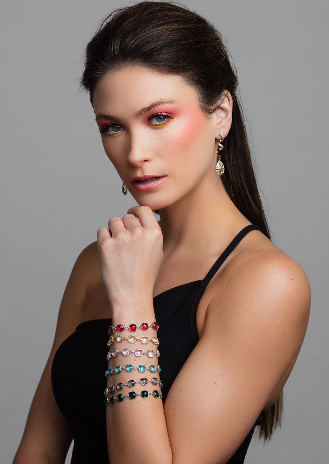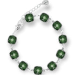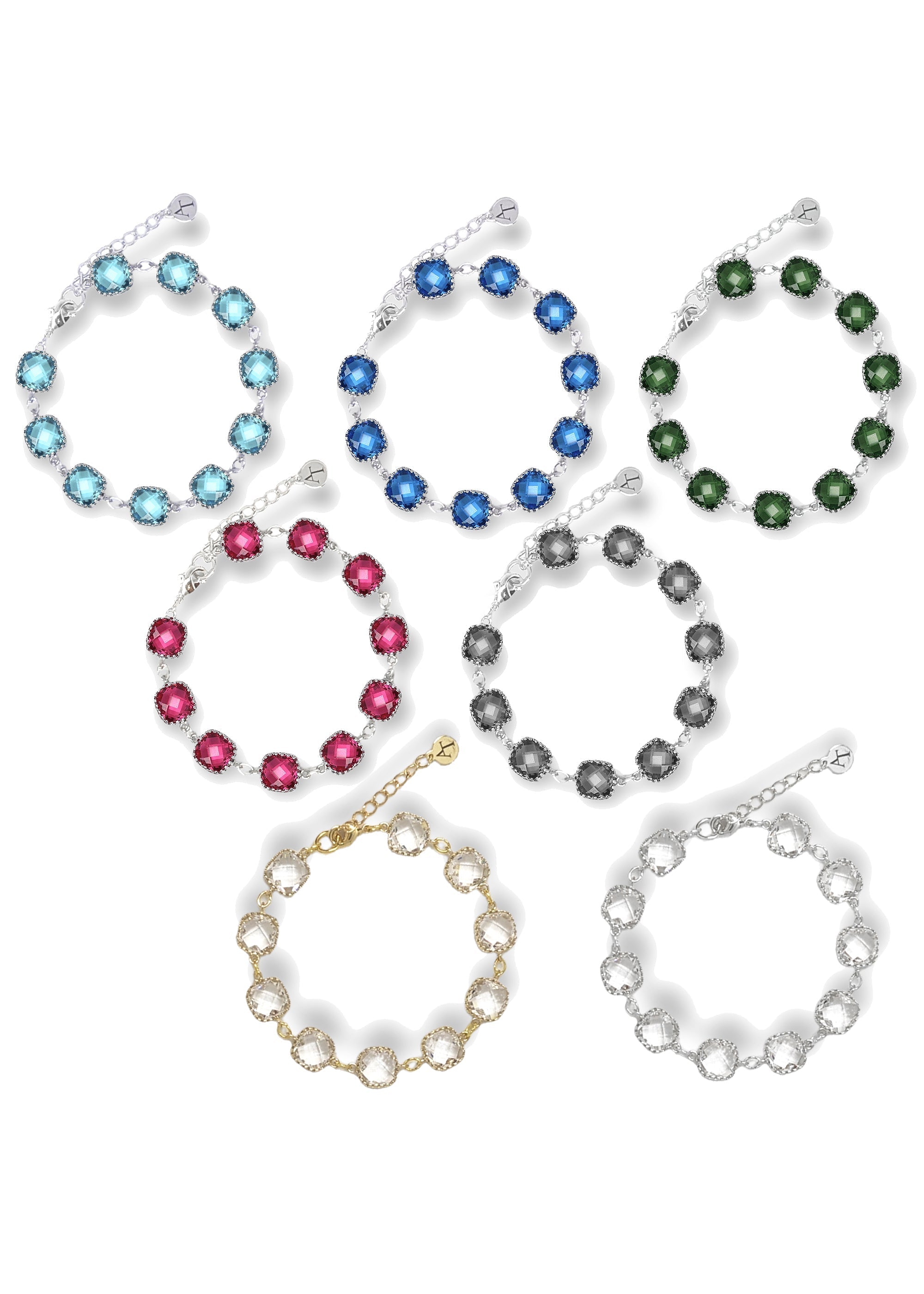 These LUZ bracelets can be worn separately or stacked for a more dramatic modern cuff inspired look. Keep it more traditional with the clear crystals that is available in a bright silver or trendy gold nickel-free metal. Or add a pop of color with the bright fuchsia pink, stunning aquamarine, gorgeous emerald green, deep sapphire blue or dark black diamond crystal options. All plated with a gorgeous silver finishing. These bracelets have a lobster claw closure, is adjustable and measures up to 7 inches.