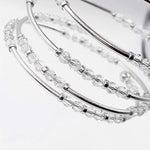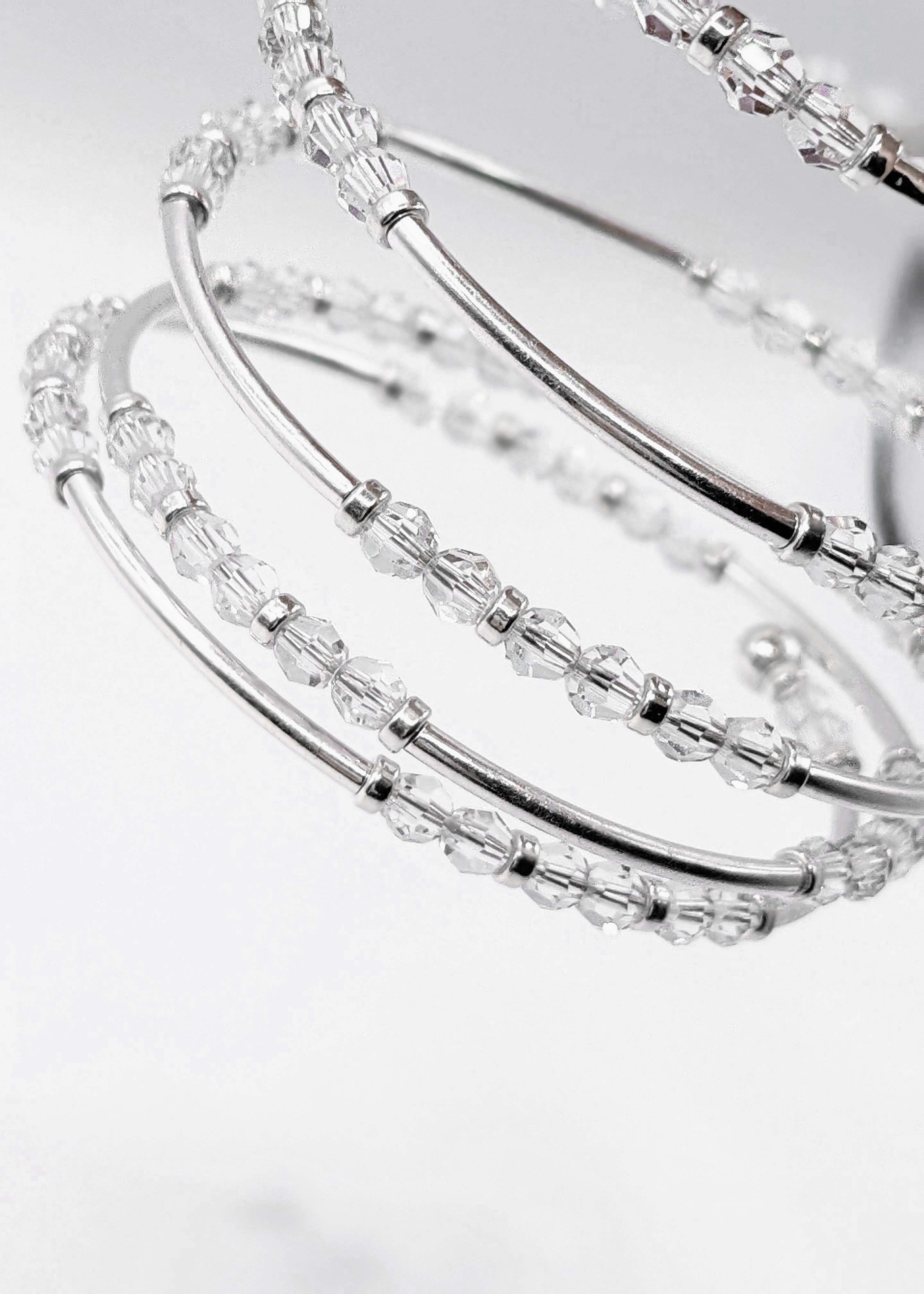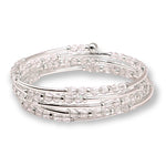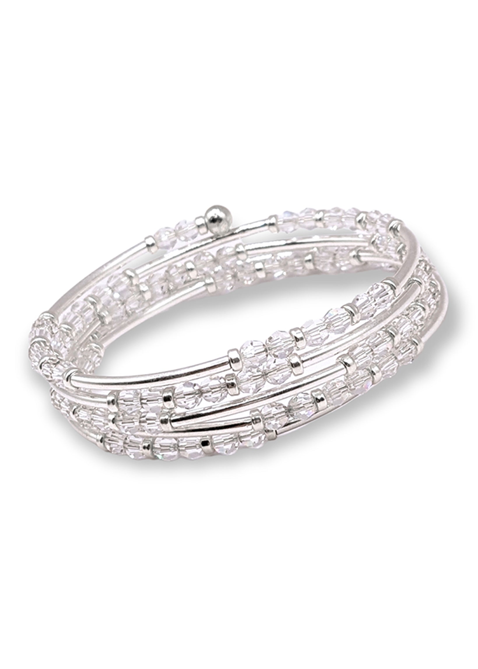 The MIRANDA wrap around crystal bracelet is modern and fun. This 5 strand wrap bracelet is embellished with sparkly Austrian crystals. This bracelet is sterling silver and nickel-free to add to its luxurious design. Due to its wrap around design this bracelet is a one size fits most design. It is available in a bright silver.