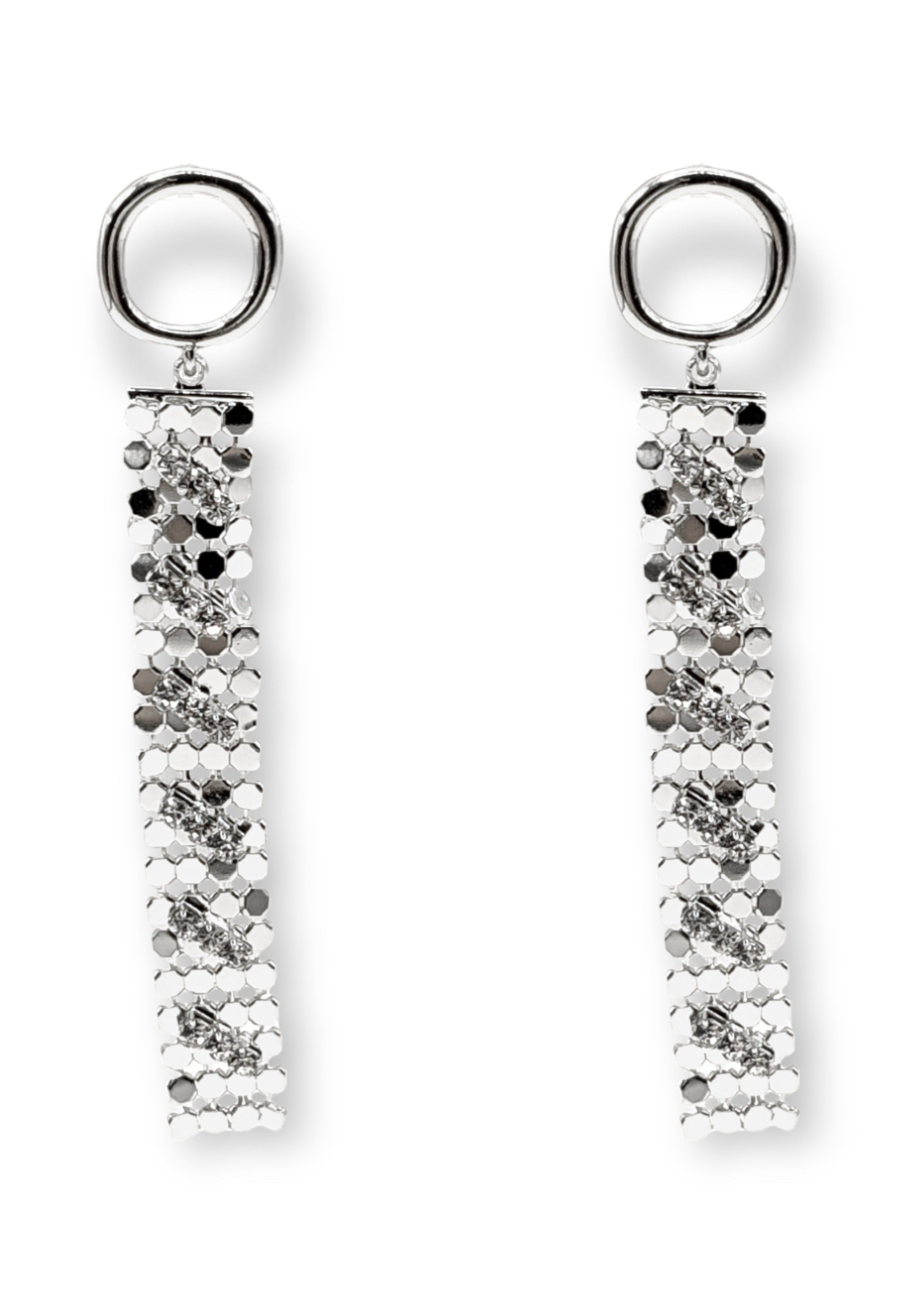 The MORGAN earrings are perfect for a night on the town. These disco inspired long bar earrings have diagonal crystals throughout to add a hint of sparkle. These glamorous earrings are lightweight and available in trendy gold or modern bright silver. The earrings are plated in a bright gold and rhodium silver and are nickel-free. They are attached to a push-back backing to make it easy to place in the ear and come with a butterfly backing to stay securely in place. The earring measures to approximately 3.25 inches in length.