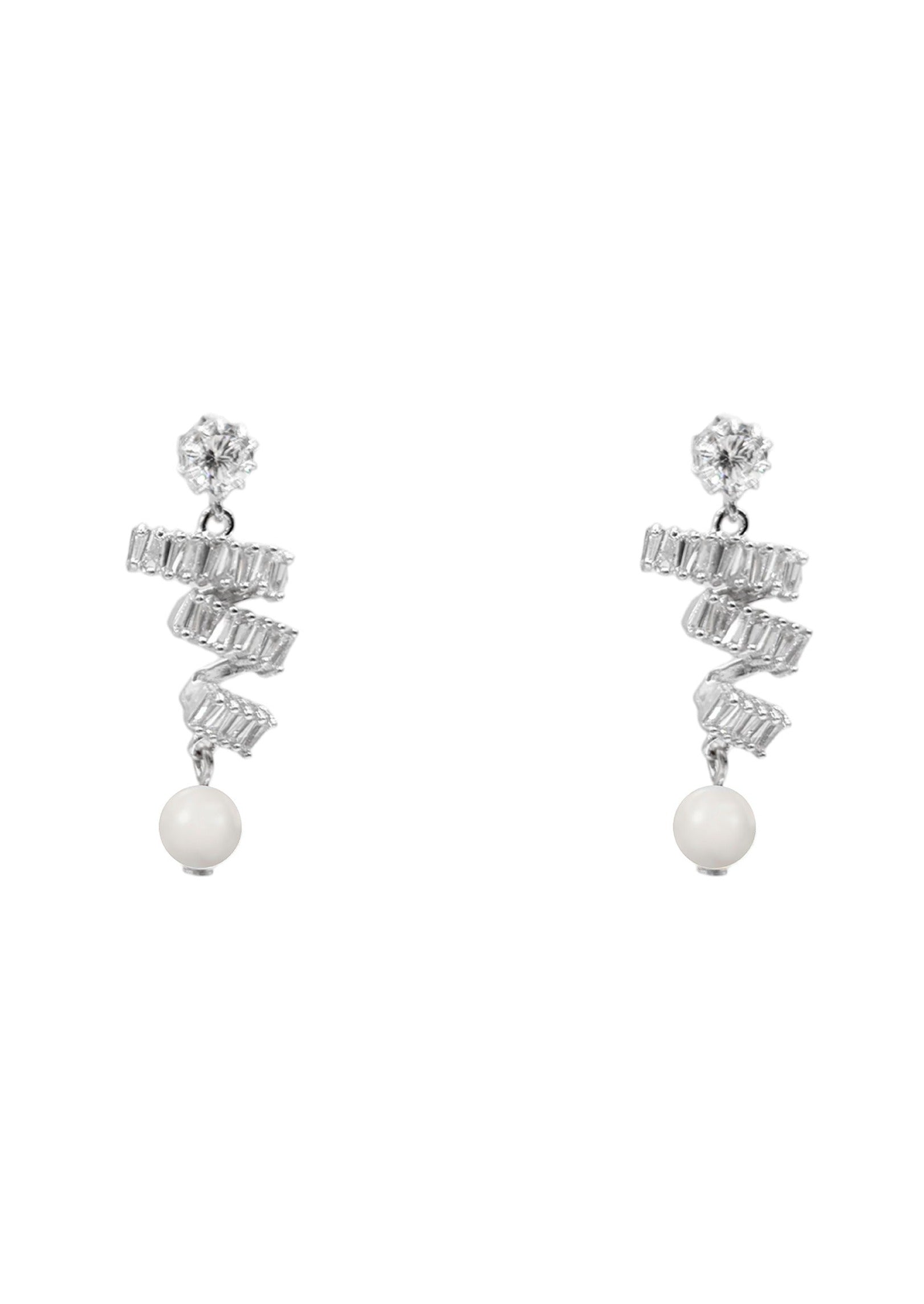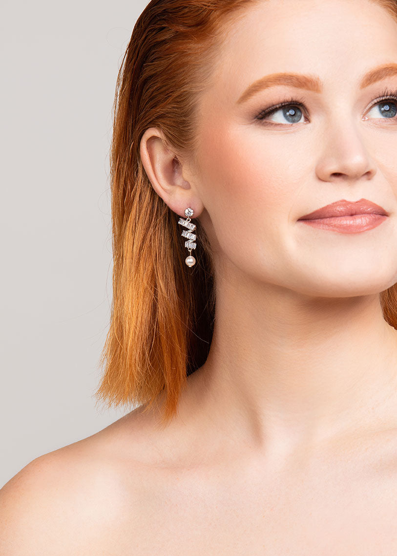 Make a fashion statement with these gorgeous NIKOLA Earrings! Featuring a sparkling crystal, zigzag design and a pearl drop, they're perfect for a modern bridal look or any casual style. Wear them and be ready to be showered with compliments all day long!