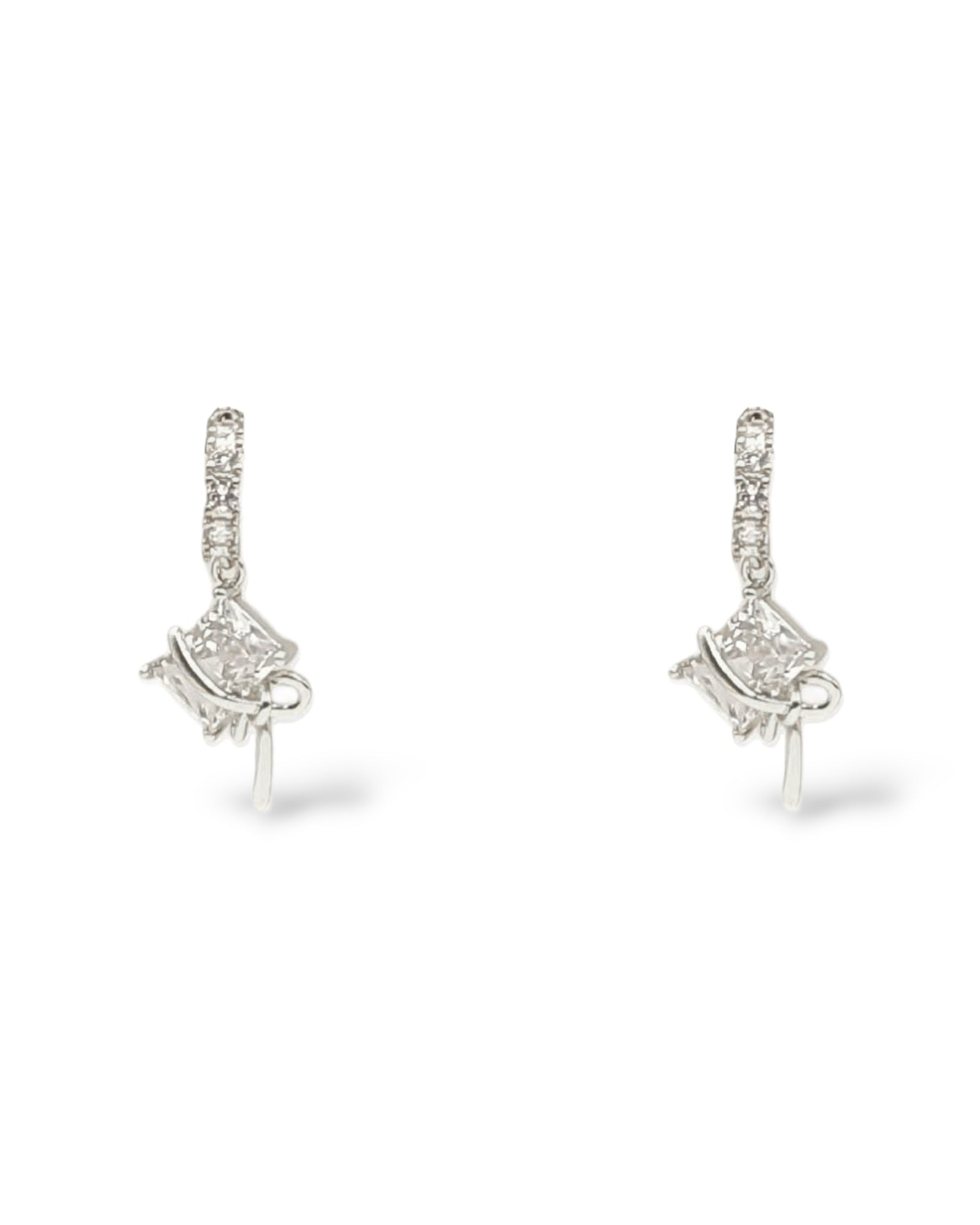 Glam up your bridal or fashion look with the OZELLA earrings! With a square crystal present inspired drop that is attached to a dazzling huggie crystal post, this chic set is perfect for a night out accessorizing. Don't let the party come and go without you! (Sparkle and shine, ladies!)