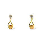 Model wearing the Perry cubic zirconia crystal drop earrings in gold