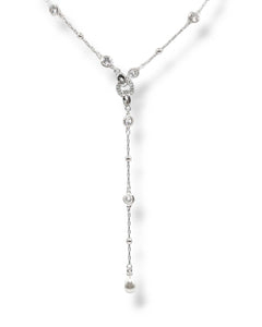 Model wearing the Prim crystal and pearl hoop earring with the Palmer necklace worn in the back